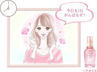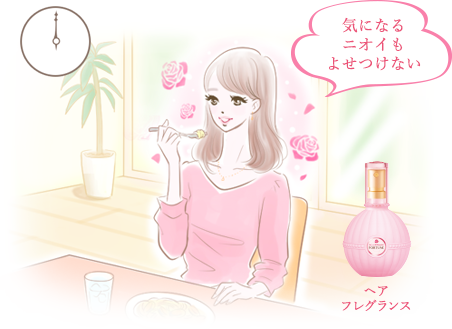 食べ物やたばこなどのニオイから髪をしっかりカバー。香りのヴェールが髪を包み、ほのかに香り続けます。