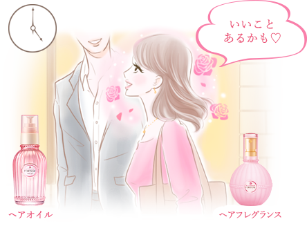 女性らしさを引き立て、リラックス効果もあるフォーチュンローズの香り。その華やかな香りでヘアケアしながらリラックス。