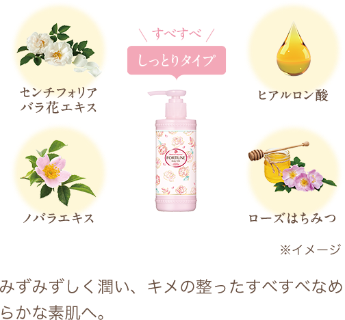 女性らしさを引き立て、リラックス効果もあるフォーチュンローズの香り。その華やかな香りでヘアケアしながらリラックス。